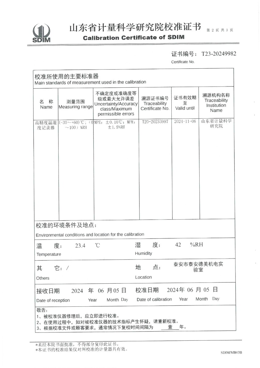 溫濕度檢定箱(-20~65℃)校準證書 2024-6-11 本文被閱讀 7254 次
