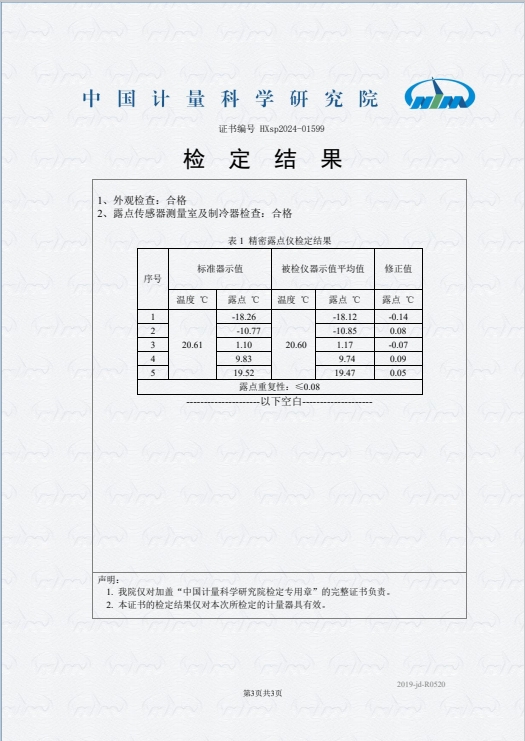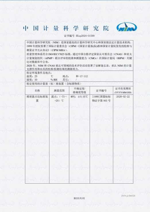 冷鏡式露點(diǎn)儀(-20-95℃)檢定證書 2024-6-17 本文被閱讀 7575 次