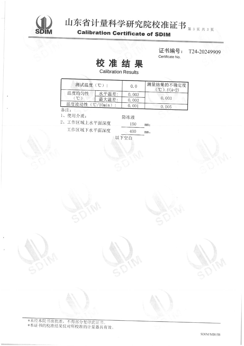 水三相點瓶凍制保存裝置(-20~95℃)校準證書