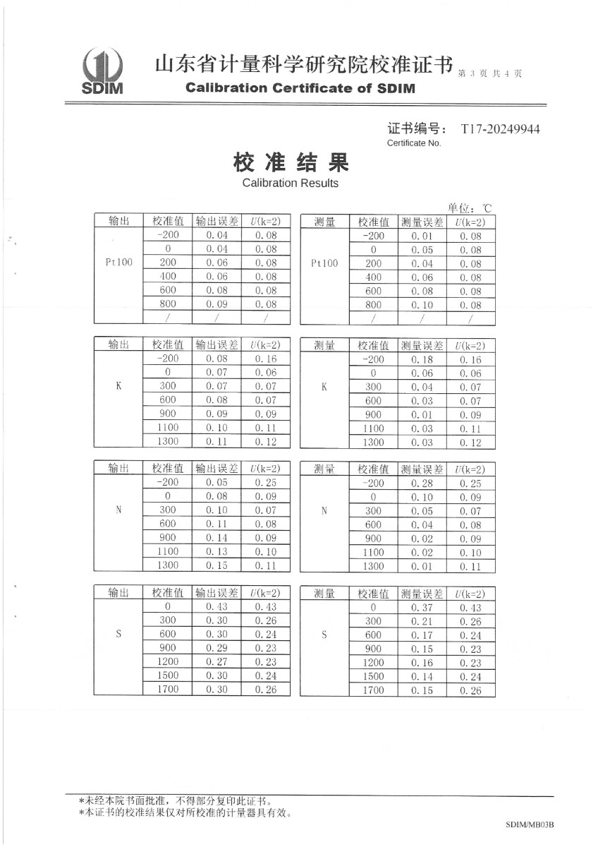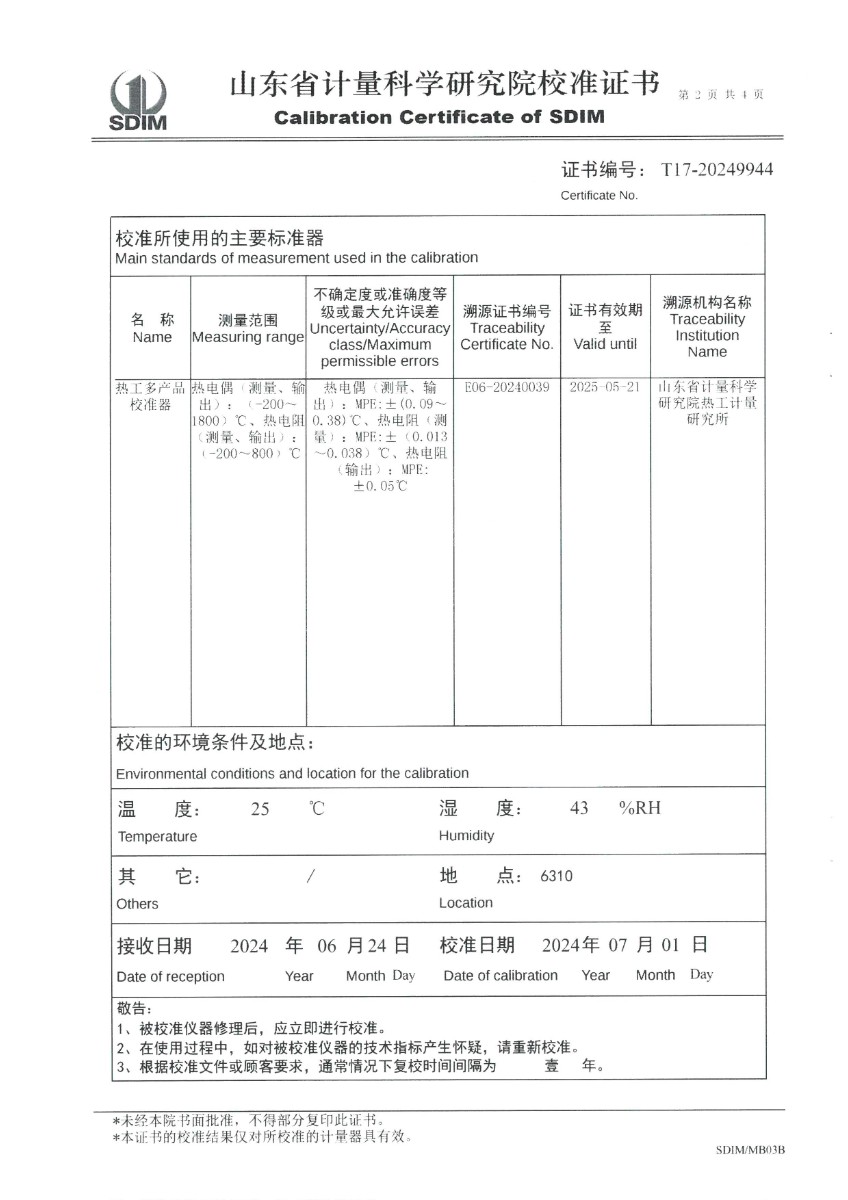 便攜式過程校驗儀(-200~1800℃)校準證書 2024-7-5 本文被閱讀 6619 次