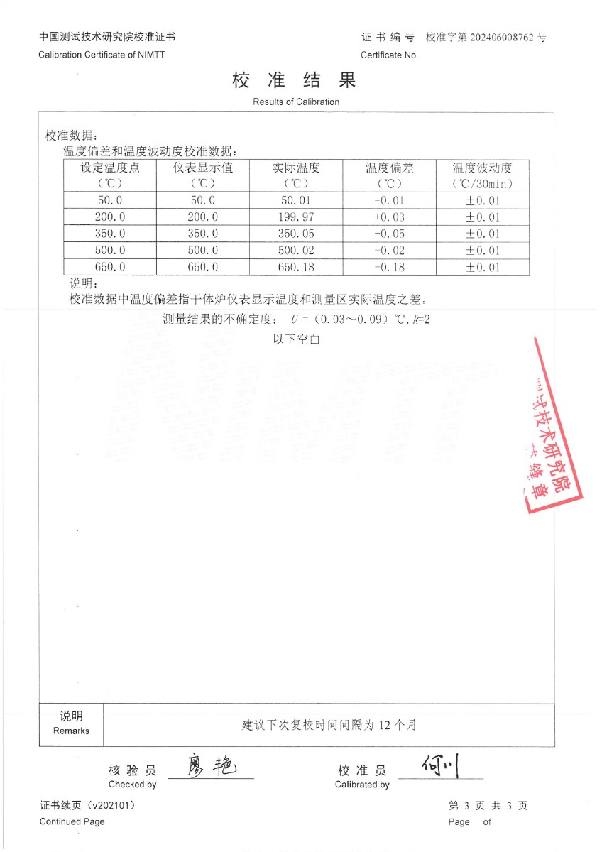 | 上一條:中溫干體爐295(50~650℃)校準(zhǔn)證書 | 下一條:低溫干體爐-校準(zhǔn)證書 |