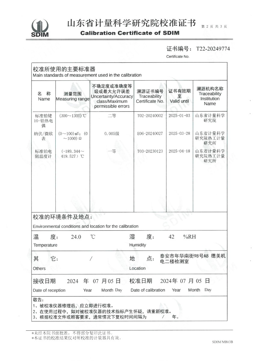 熱電偶、熱電阻自動(dòng)檢測(cè)系統(tǒng)校準(zhǔn)證書 2024-7-11 本文被閱讀 7286 次