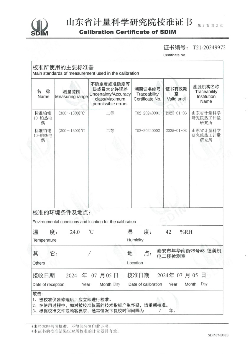 熱電偶檢定爐(300~1200℃)校準(zhǔn)證書 2024-7-11 本文被閱讀 7185 次