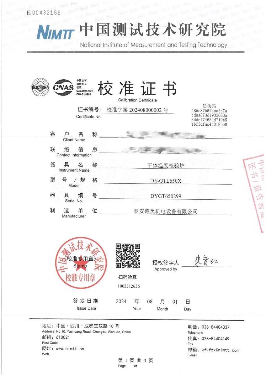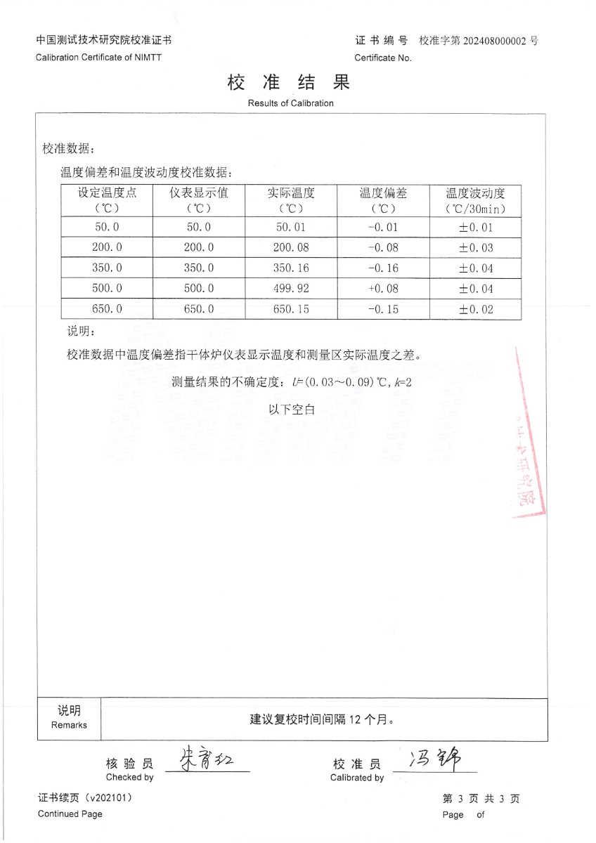 干體爐299(室溫+5℃~650℃)校準(zhǔn)證書 2024-8-5 本文被閱讀 6864 次