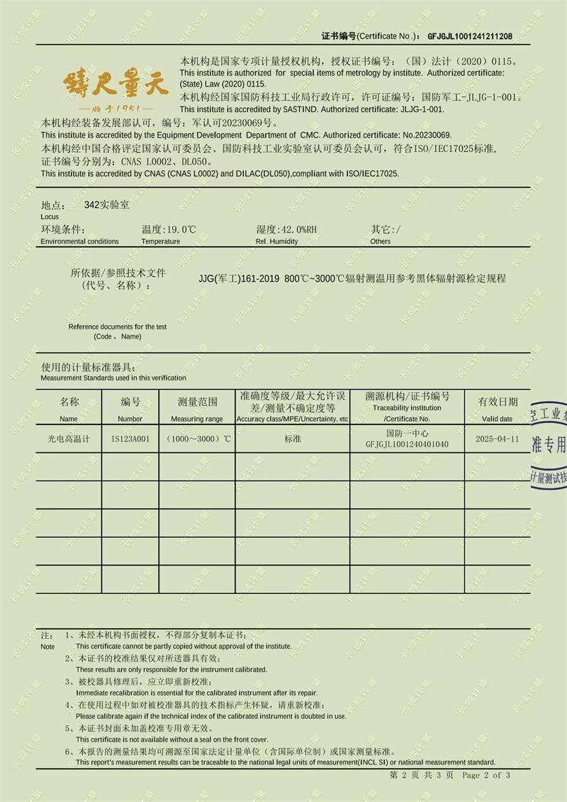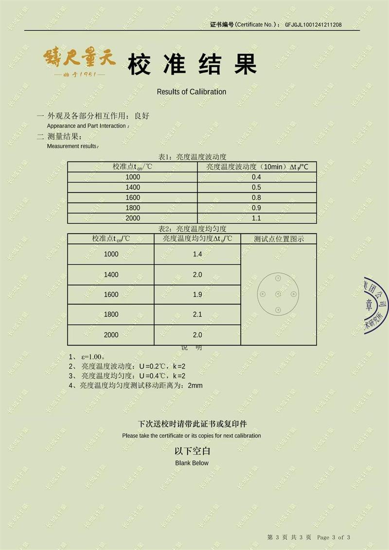 高溫黑體爐(800-3000℃)校準(zhǔn)證書 2025-1-11 本文被閱讀 5881 次