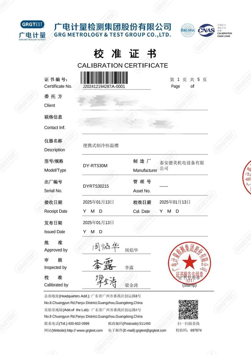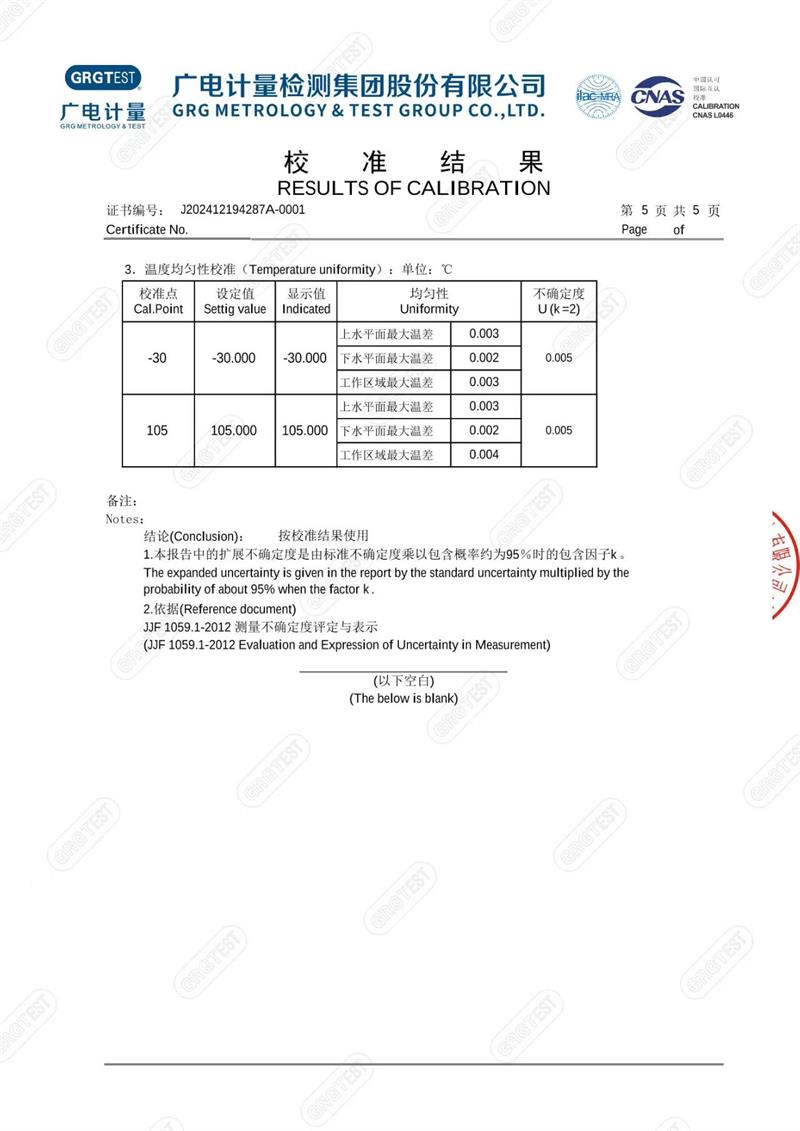 便攜式制冷恒溫槽(-30-105℃)校準(zhǔn)證書 2025-1-25 本文被閱讀 5761 次