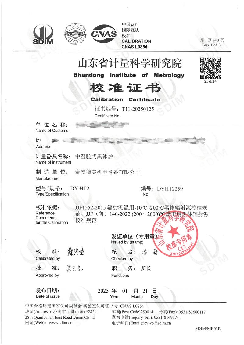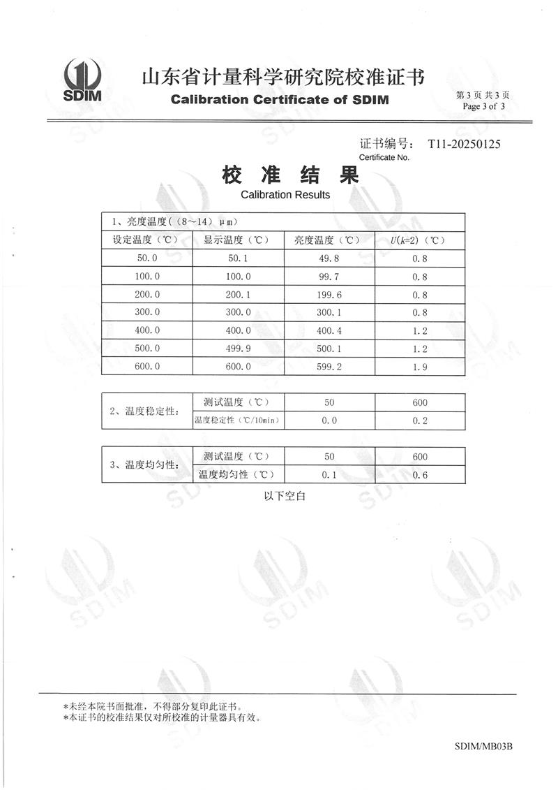中溫腔式黑體爐(50~600℃)校準(zhǔn)證書 2025-1-25 本文被閱讀 5952 次