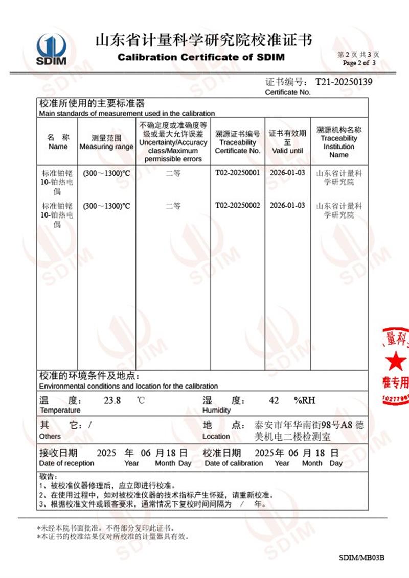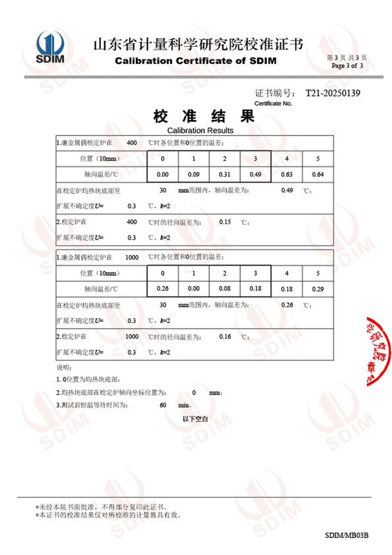 熱電偶檢定爐(300-1200℃)校準證書 2025-6-20 本文被閱讀 3783 次
