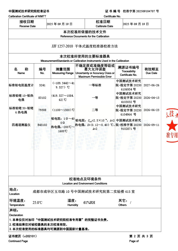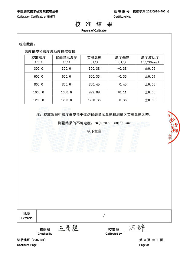 高溫干體爐(300-1200℃)校準證書 2025-9-22 本文被閱讀 2075 次