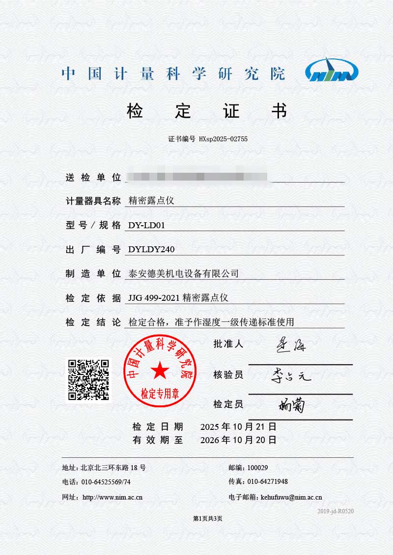 露點儀檢定證書 2025-10-30 本文被閱讀 1668 次