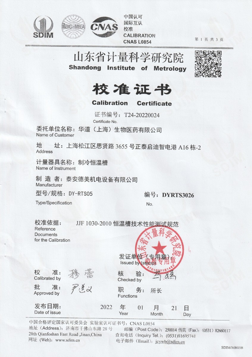 華道(上海)生物醫(yī)藥有限公司-制冷恒溫槽 2022-2-7 本文被閱讀 15449 次