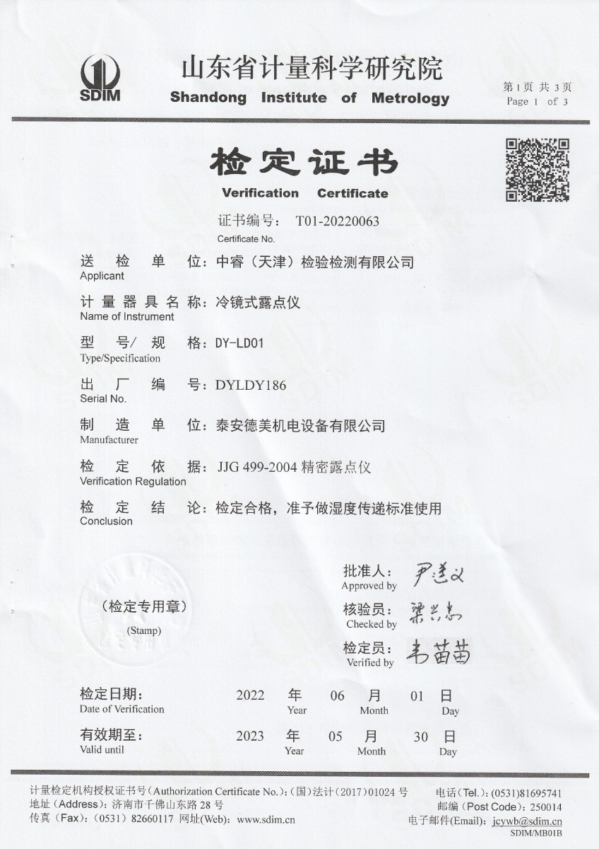 | 上一條:中睿(天津)檢驗(yàn)檢測(cè)有限公司-冷鏡式露點(diǎn)儀校準(zhǔn)證書(shū) | 下一條:DY-GTL-XC智能干體爐/干體溫度校驗(yàn)爐(電測(cè)) |