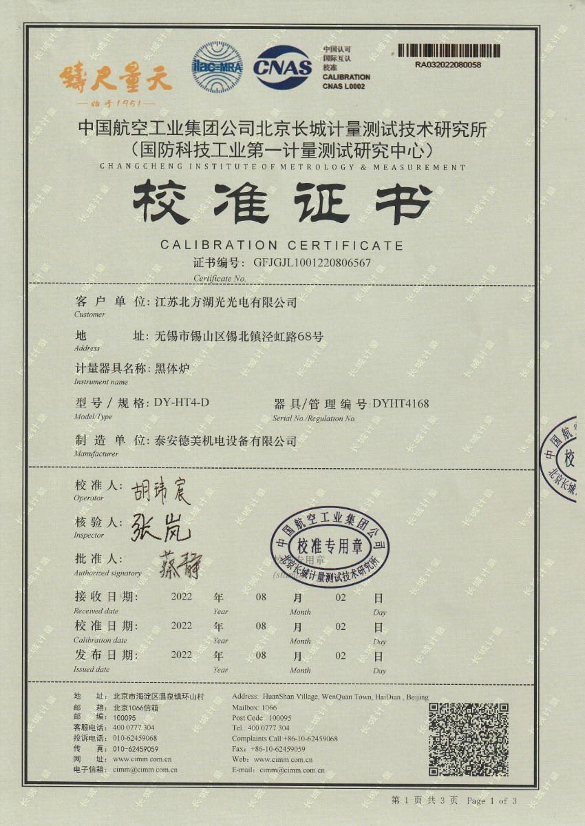 江蘇北方湖光光電有限公司-黑體爐 2022-8-17 本文被閱讀 14790 次