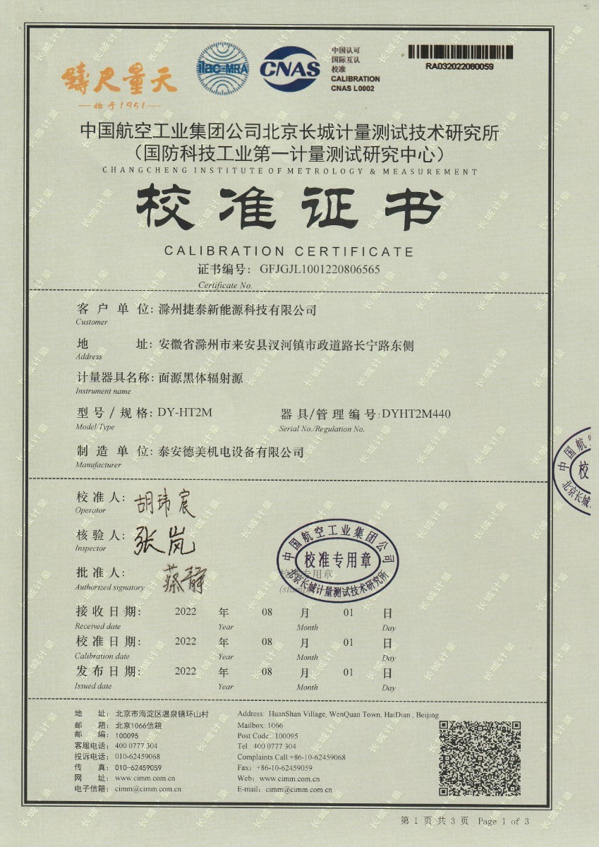 滁州捷泰新能源科技有限公司-面源黑體爐 2022-8-17 本文被閱讀 15807 次