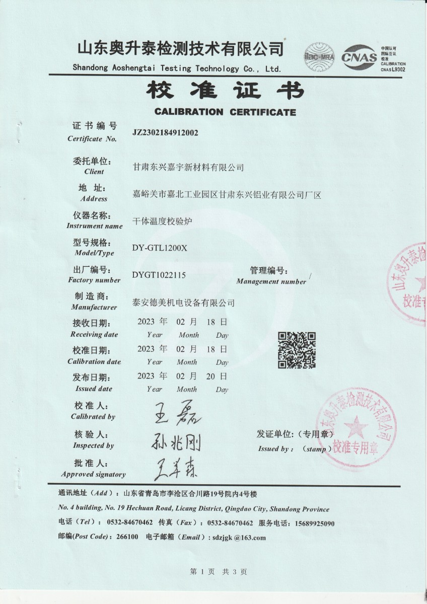 | 上一條:甘肅東興嘉宇新材料有限公司 干體溫度校驗爐 校準(zhǔn)證書(1) | 下一條:DY-GTL-XC智能干體爐/干體溫度校驗爐(電測) |