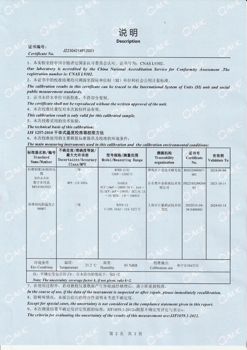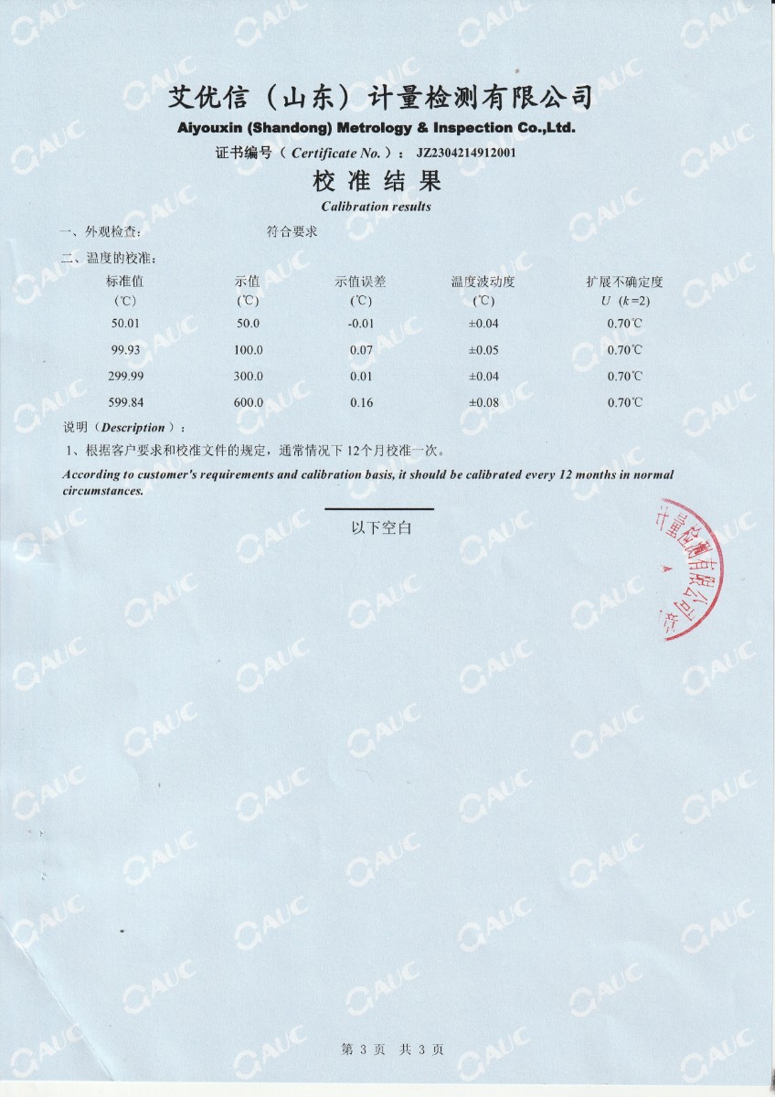 | 上一條:廣東省順邦計量檢測科技有限公司 冷鏡式露點儀(溫度) 校準(zhǔn)證書 | 下一條:低溫干體爐-校準(zhǔn)證書 |