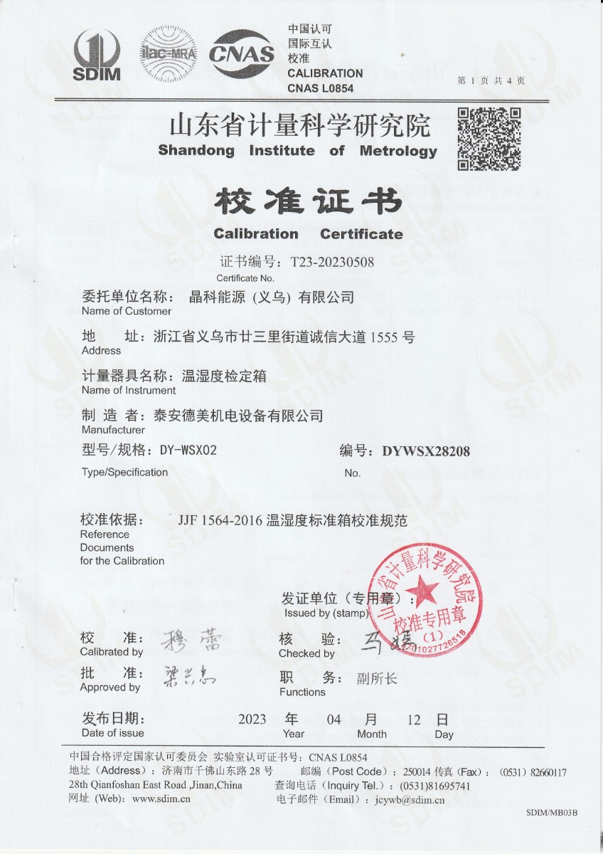 | 上一條:晶科能源(義烏)有限公司 精密露點(diǎn)儀(溫度)校準(zhǔn)證書(shū) | 下一條:低溫干體爐-校準(zhǔn)證書(shū) |