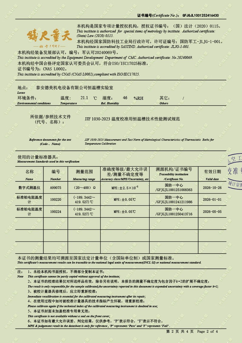 高精度制冷恒溫槽(0~100℃)-校準(zhǔn)證書 2025-12-19 本文被閱讀 1231 次