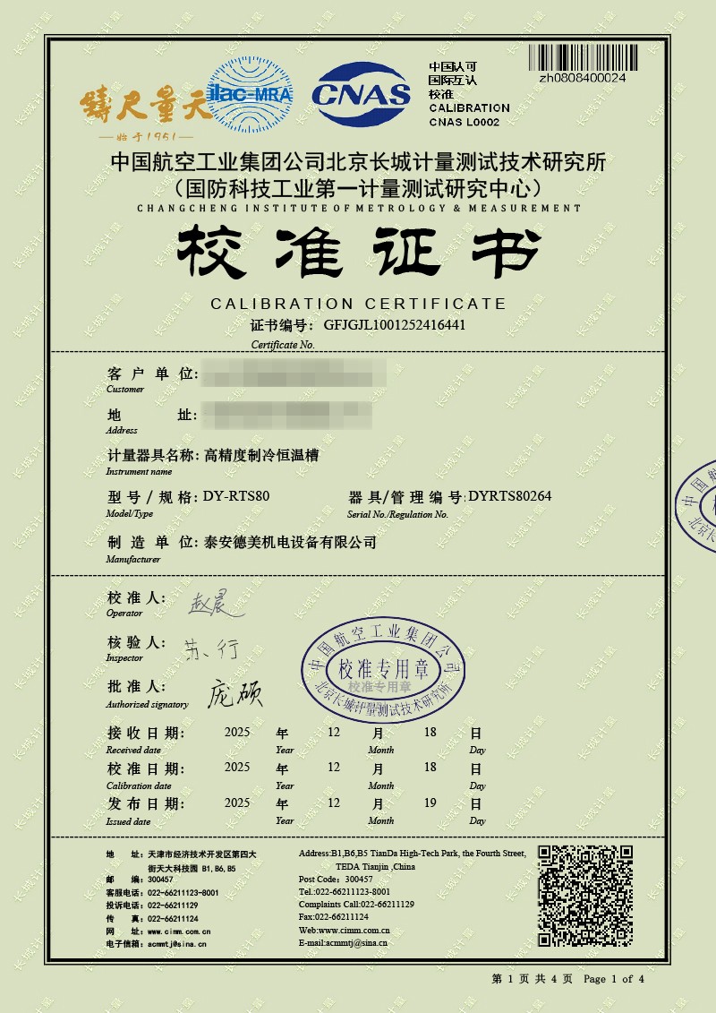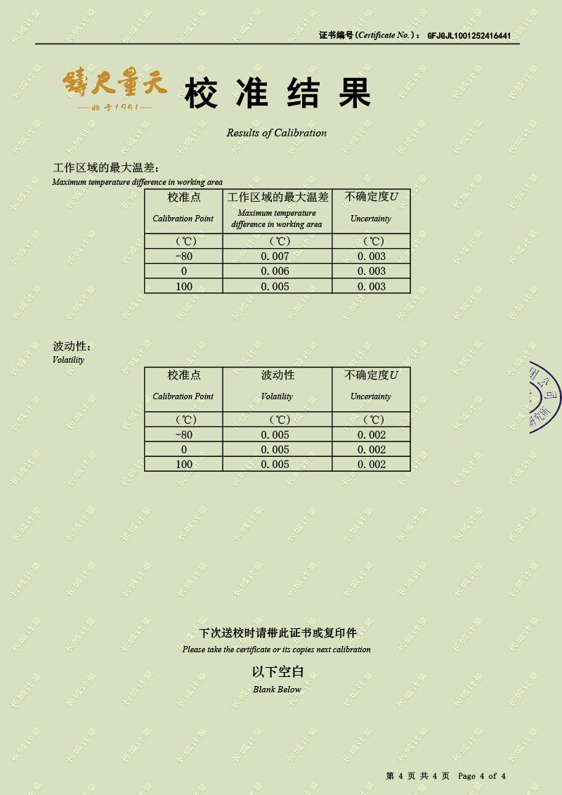 高精度制冷恒溫槽(-80~100℃)校準(zhǔn)證書 2025-12-19 本文被閱讀 1850 次