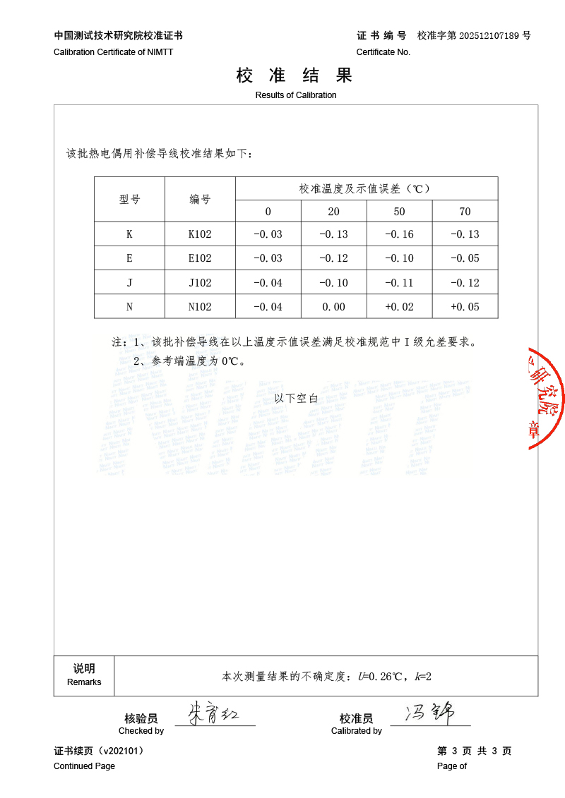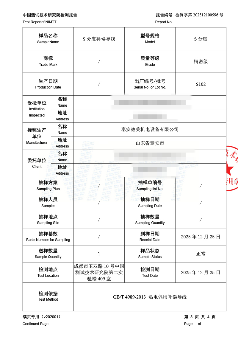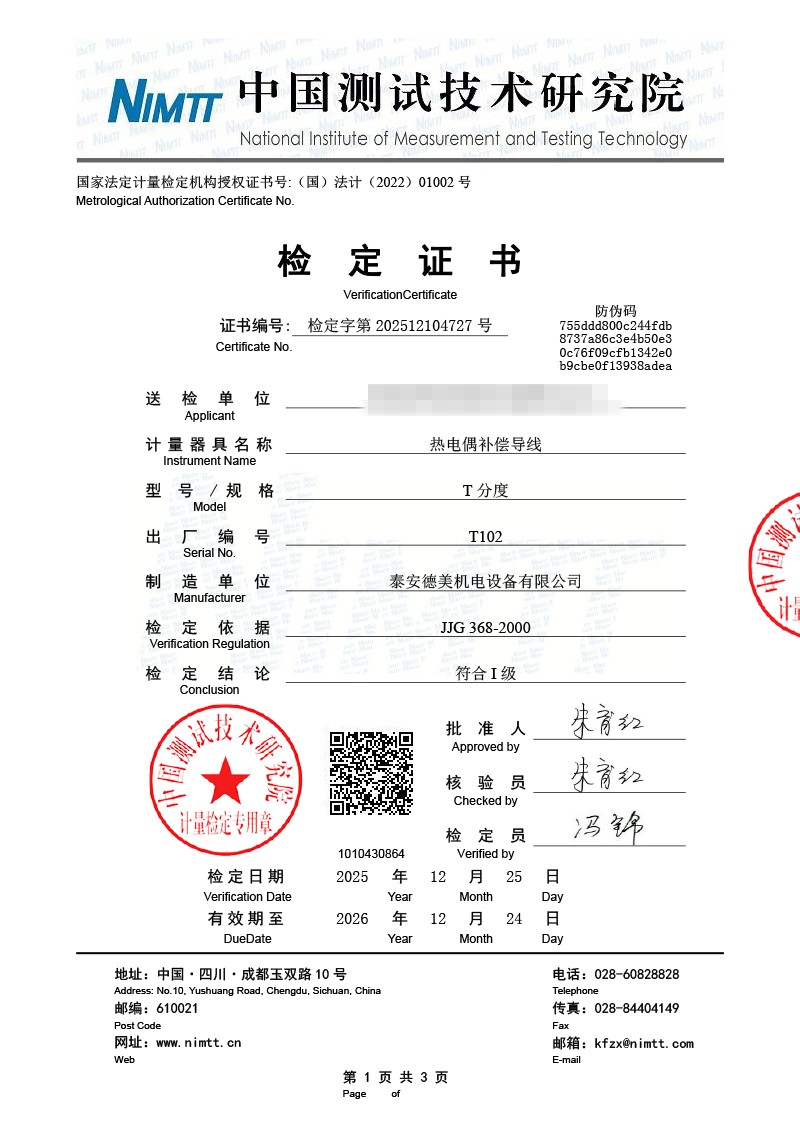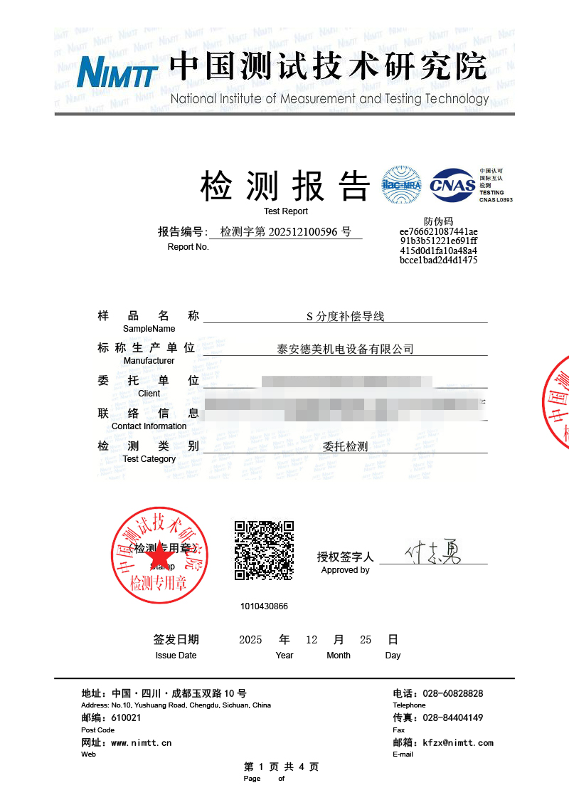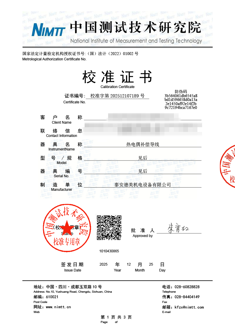 補償導線檢測、檢定、校準報告 2026-1-4 本文被閱讀 822 次