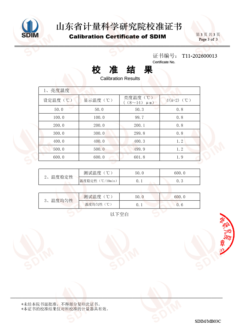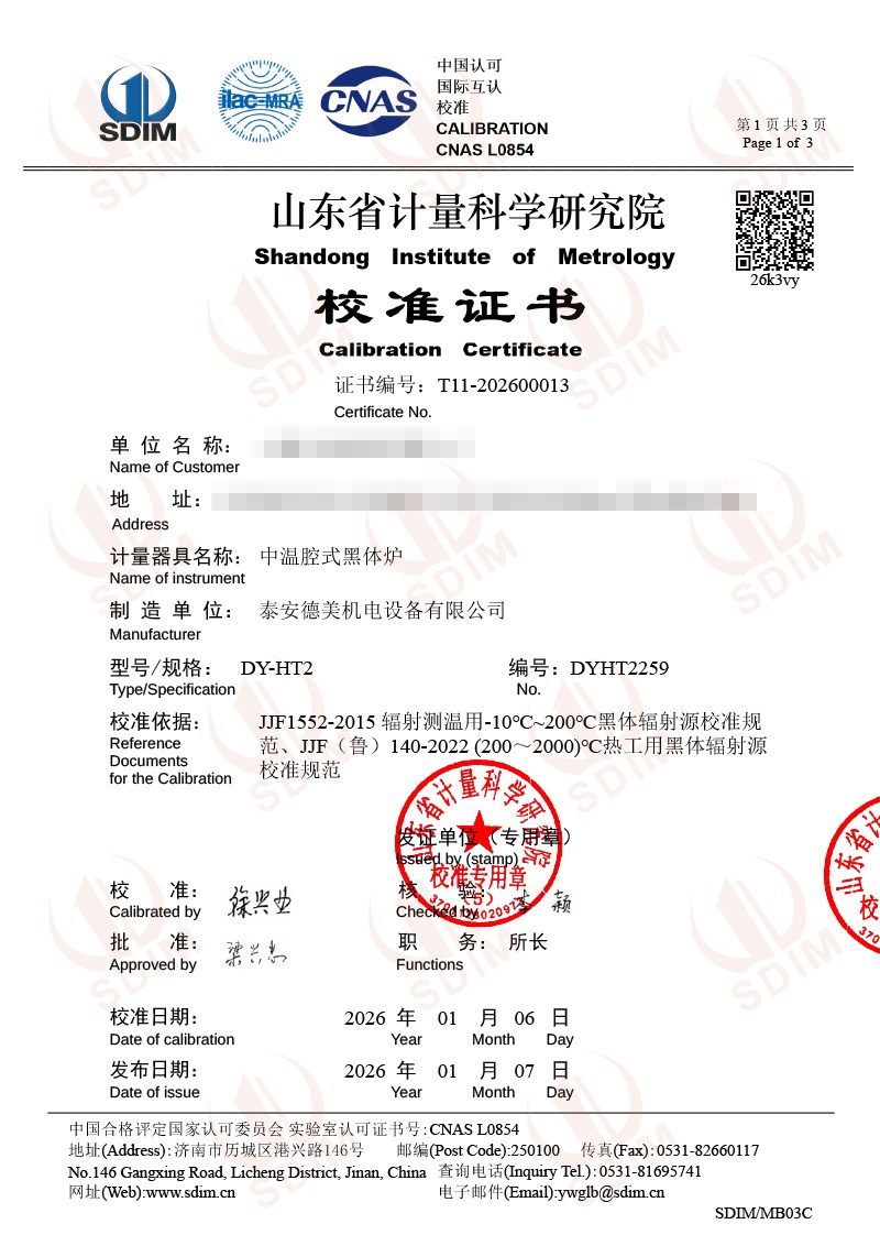 中溫腔式黑體校準(zhǔn)證書 2026-1-8 本文被閱讀 595 次