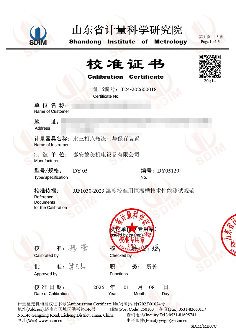 水三相點瓶凍制與保存裝置校準(zhǔn)證書 2026-1-13 本文被閱讀 1112 次