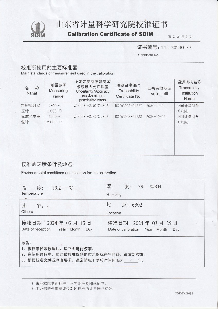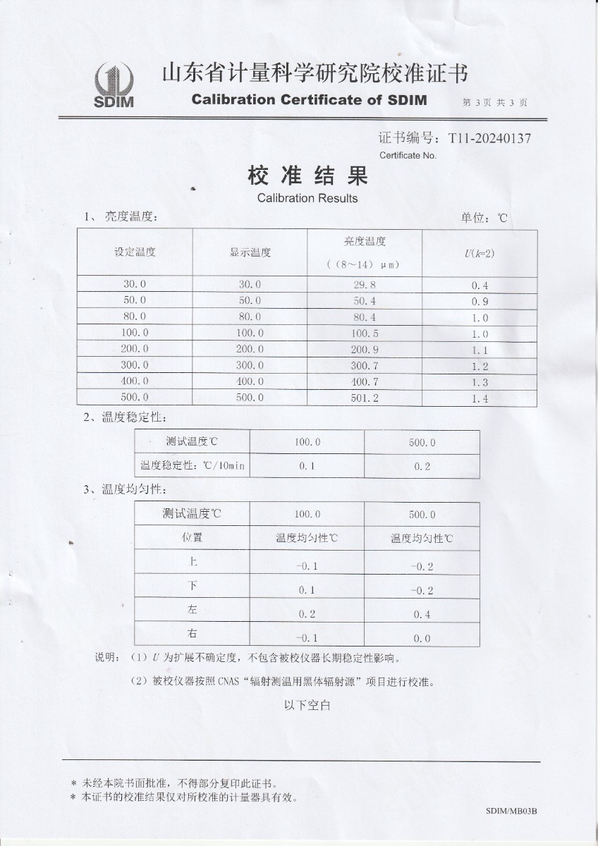 面源黑體爐校準證書 2024-3-27 本文被閱讀 7005 次