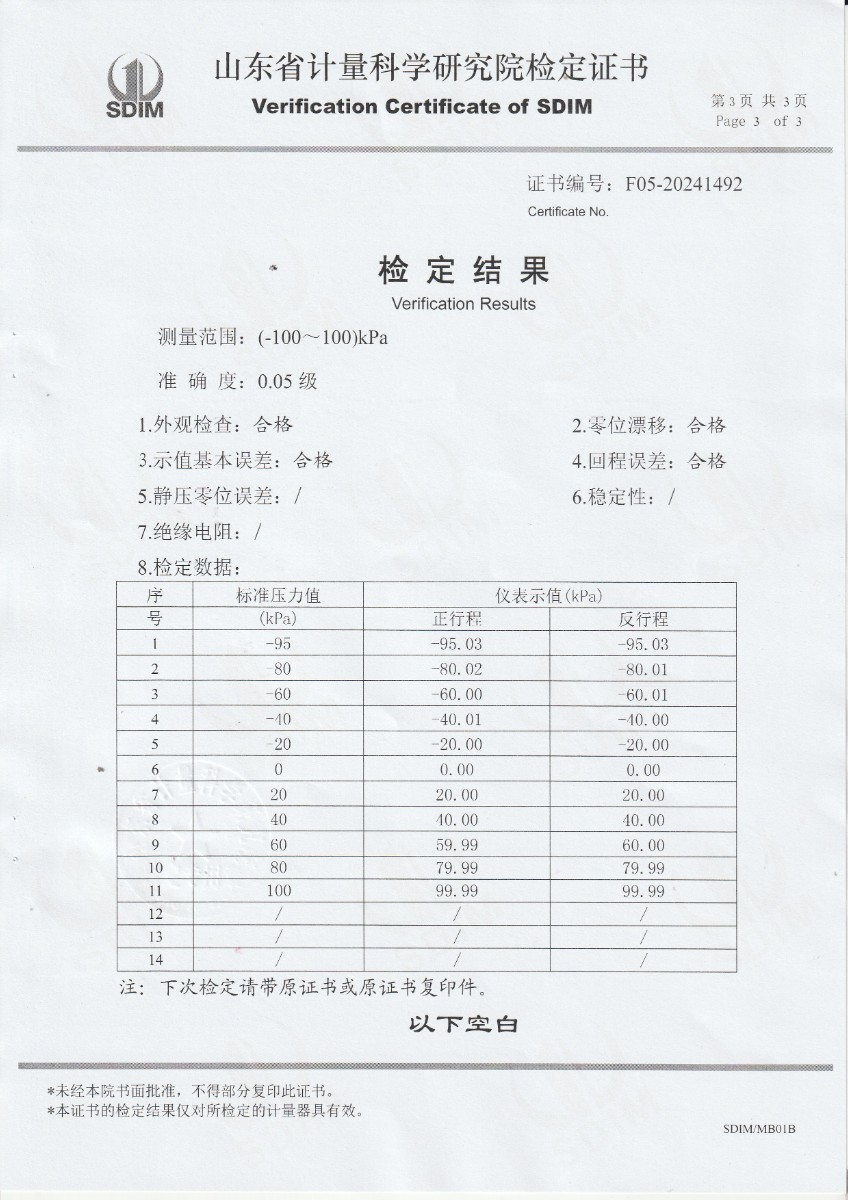 數(shù)字壓力表檢定證書 2024-4-11 本文被閱讀 7031 次
