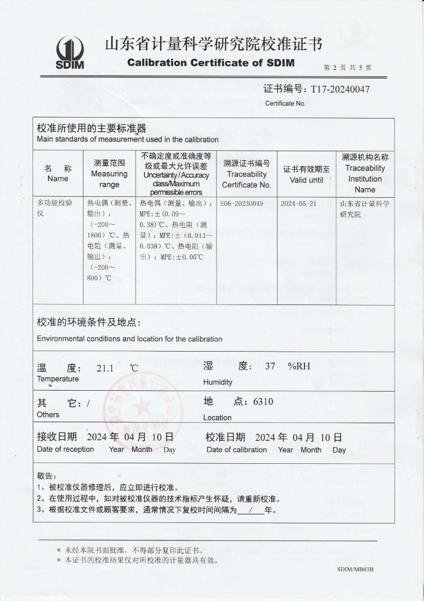 溫度校驗儀校準證書 2024-4-12 本文被閱讀 7051 次