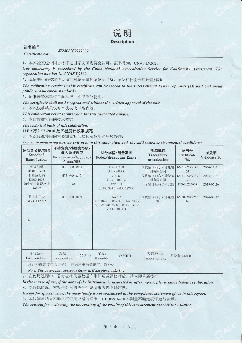高精度數(shù)字溫度計校準(zhǔn)證書