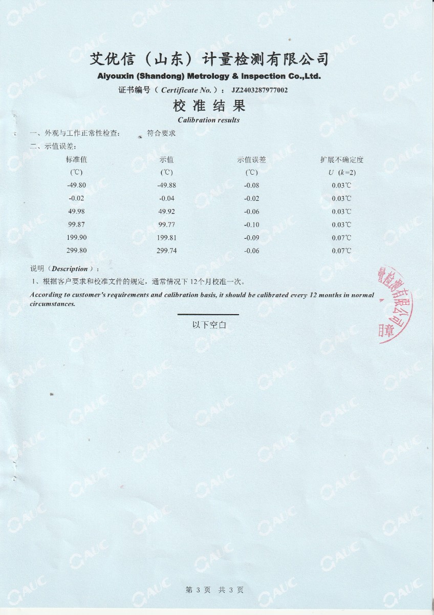 高精度數(shù)字溫度計校準(zhǔn)證書 2024-4-13 本文被閱讀 6952 次