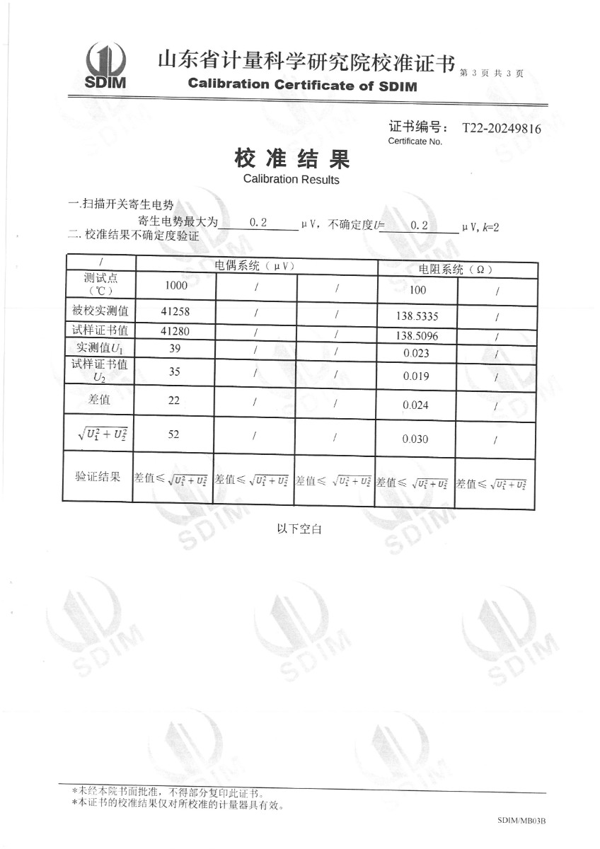 | 上一條:廉金屬熱電偶檢定爐(300~1200℃)校準(zhǔn)證書 | 下一條:低溫干體爐-校準(zhǔn)證書 |