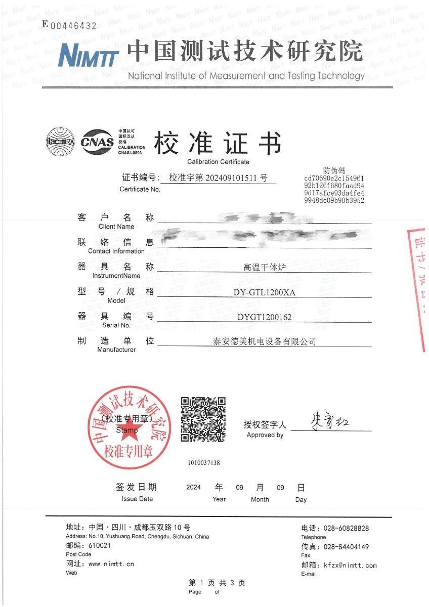 上一條:泰安德美-輻射溫度計(jì)(-30~900℃)校準(zhǔn)證書下一條:低溫干體爐-校準(zhǔn)證書