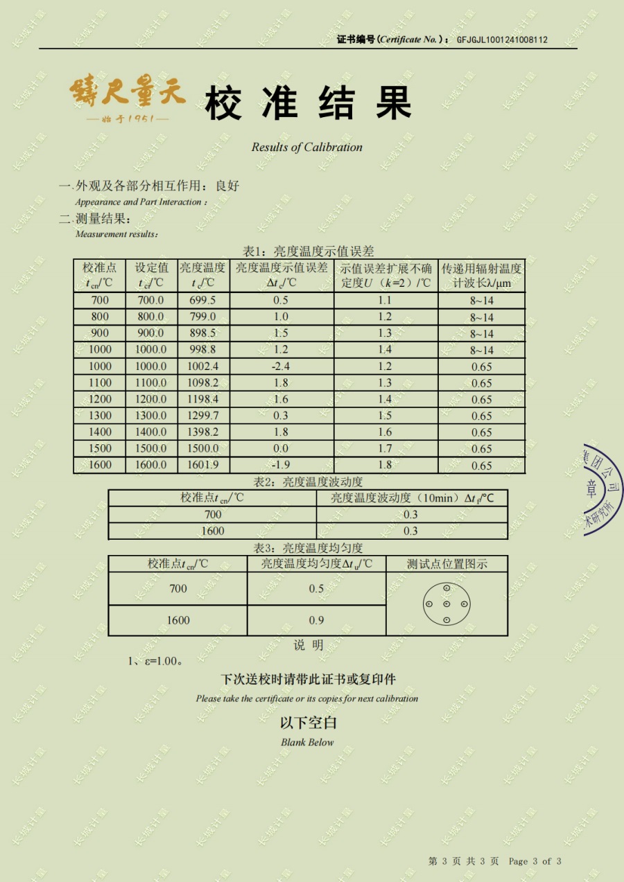 高溫黑體爐(700-1600℃)校準(zhǔn)證書 2024-11-6 本文被閱讀 7034 次