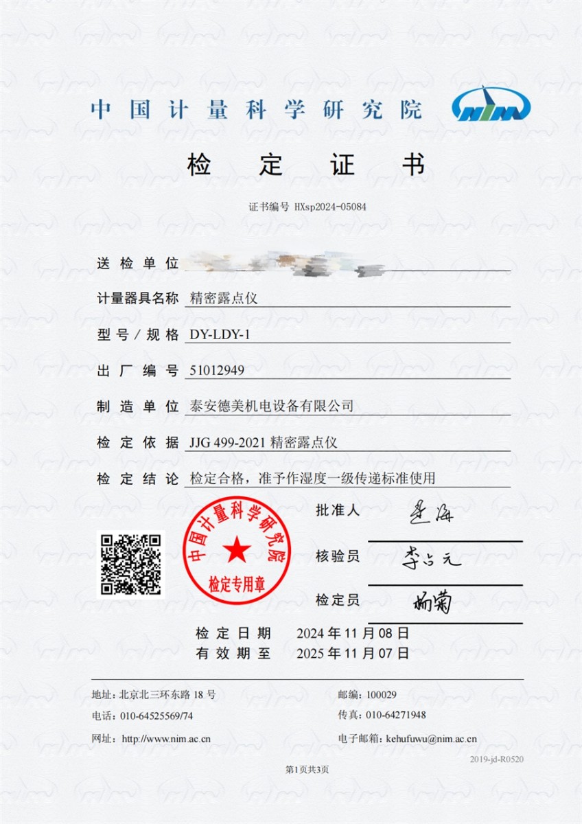 冷鏡式露點儀檢定證書 2024-11-21 本文被閱讀 7393 次