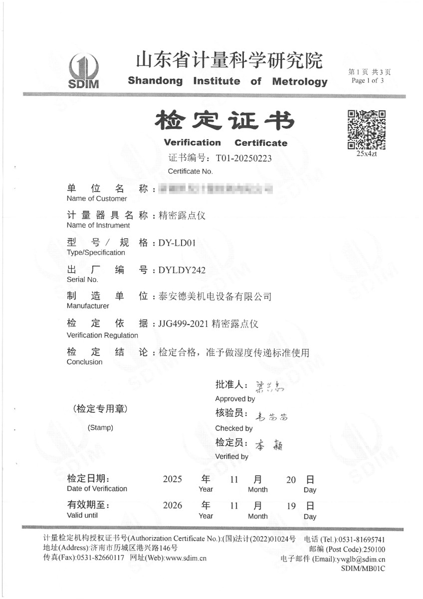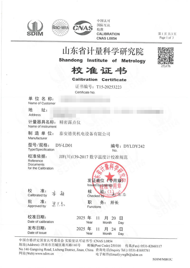 露點(diǎn)儀檢定、校準(zhǔn)證書 2025-12-4 本文被閱讀 1564 次