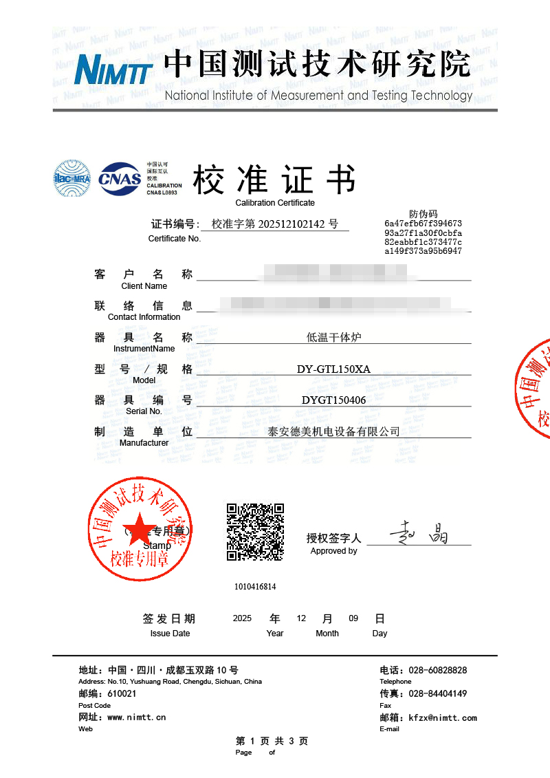 | 上一條:高精度數(shù)字溫度計(jì)校準(zhǔn)證書(shū) | 下一條:DY-GTL-XC智能干體爐/干體溫度校驗(yàn)爐(電測(cè)) |