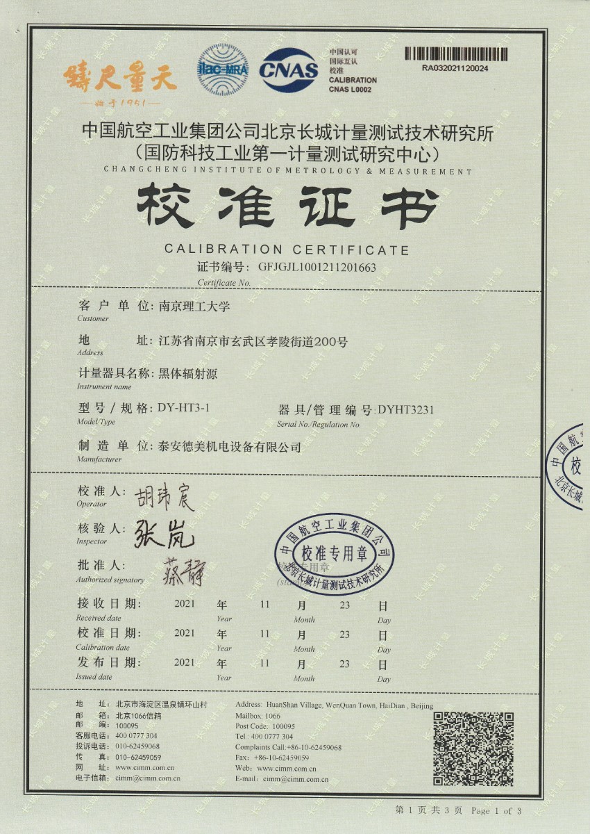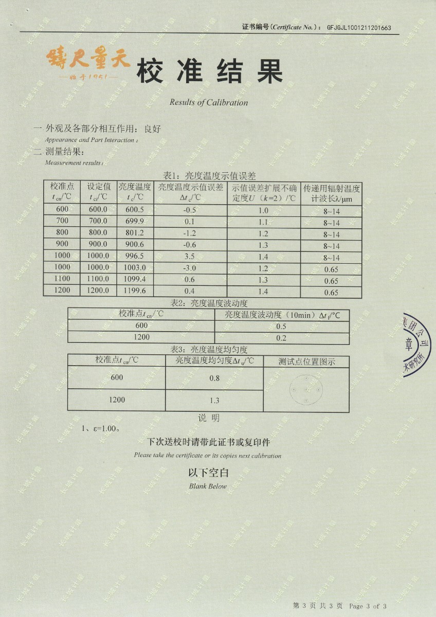 | 上一條:南京理工大學(xué)-黑體輻射源校準(zhǔn)證書350-800℃ | 下一條:低溫干體爐-校準(zhǔn)證書 |