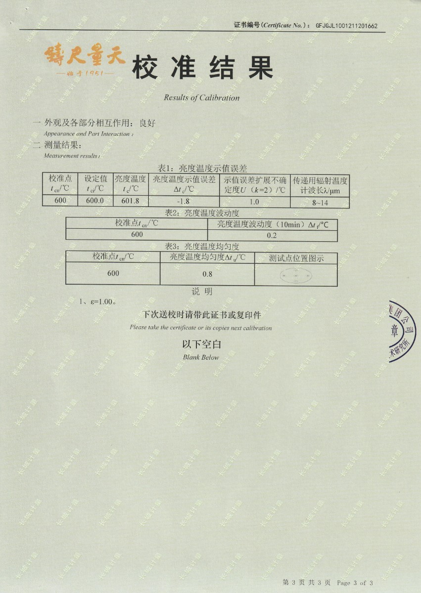 南京理工大學-黑體輻射源校準證書600℃ 2021-12-4 本文被閱讀 15064 次