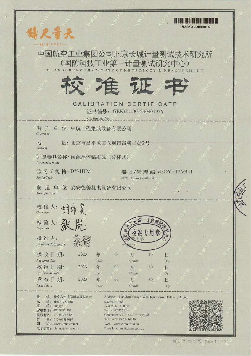 | 上一條:中航工程集成設(shè)備有限公司 黑體輻射源 校準(zhǔn)證書 (2) | 下一條:DY-GTL-XC智能干體爐/干體溫度校驗(yàn)爐(電測(cè)) |