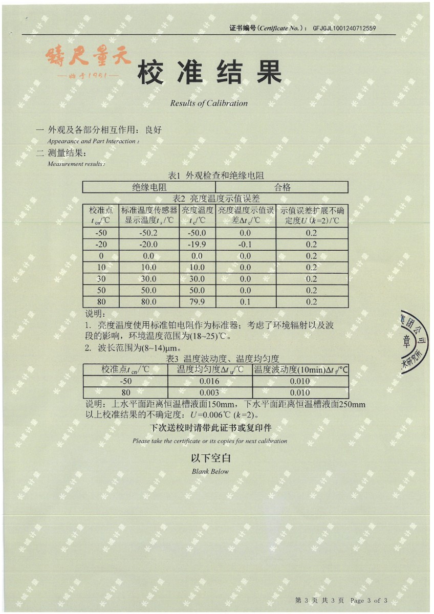 低溫浴式(-50~80℃)校準證書 2024-7-29 本文被閱讀 7689 次