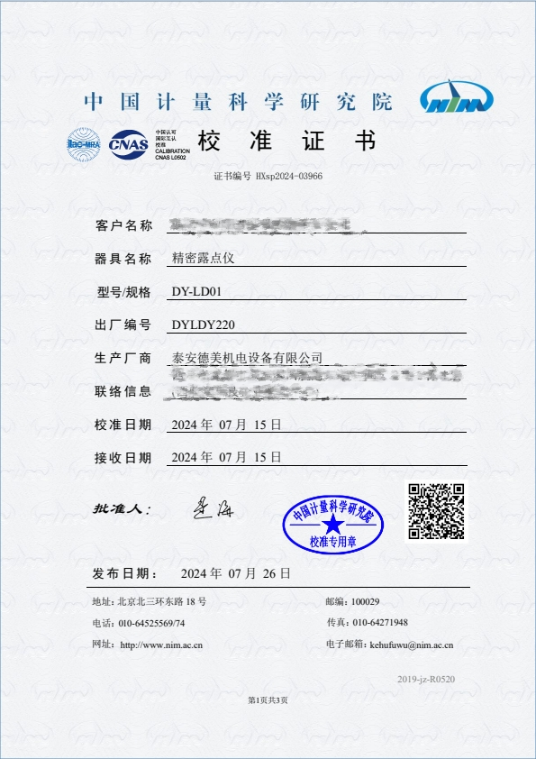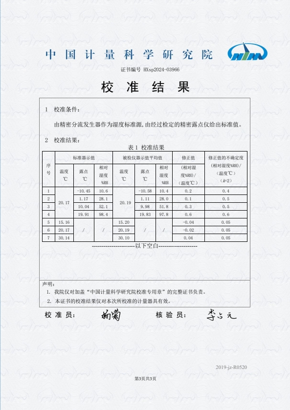露點儀校準(zhǔn)證書 2024-7-29 本文被閱讀 8491 次