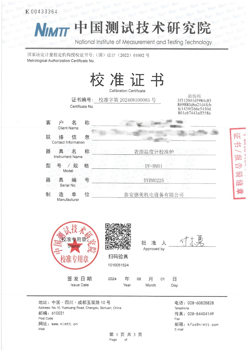 | 上一條:干體爐301(室溫+5℃~650℃)校準(zhǔn)證書 | 下一條:DY-GTL-XC智能干體爐/干體溫度校驗爐(電測) |