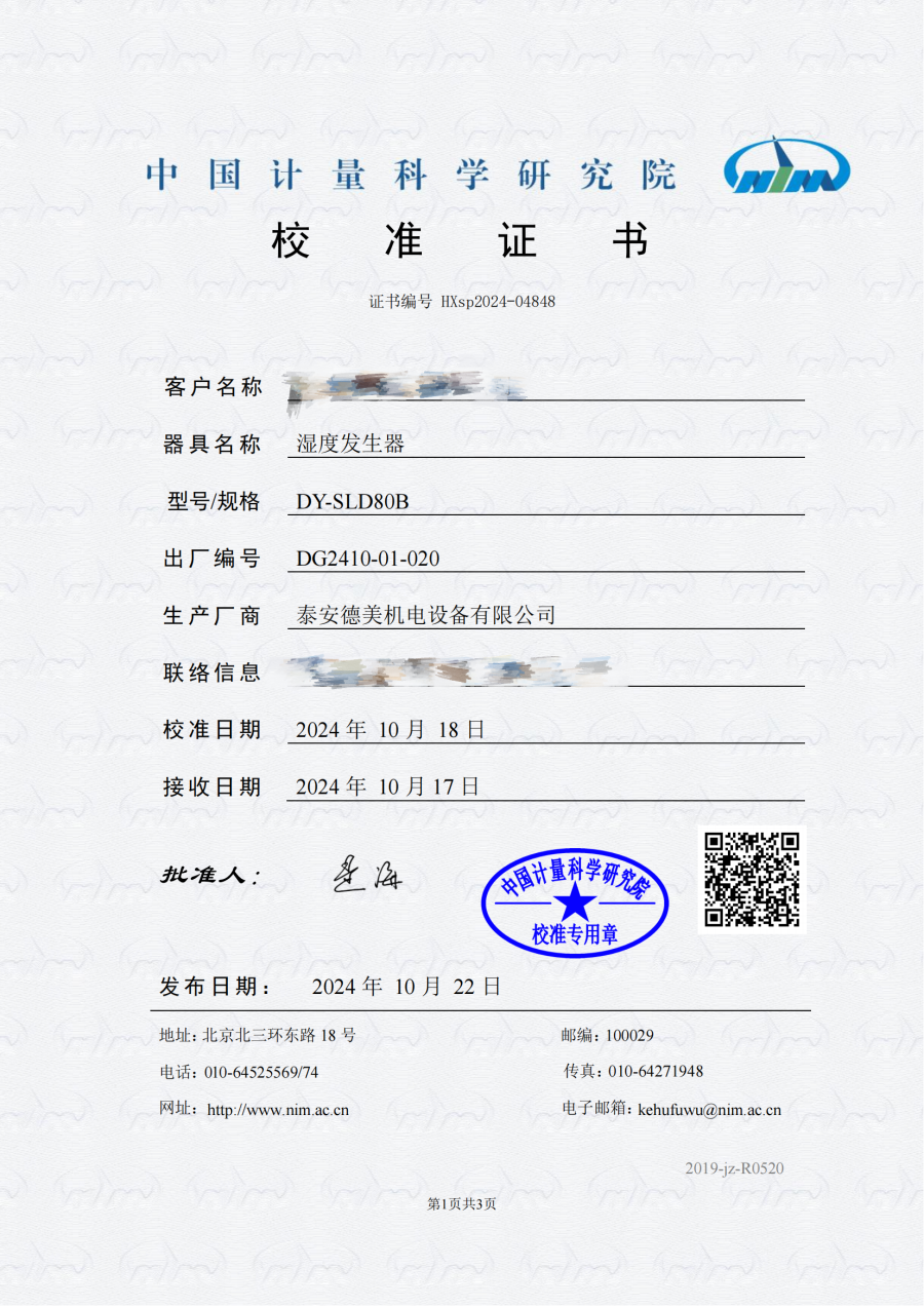 標(biāo)準(zhǔn)濕度發(fā)生器校準(zhǔn)證書 2024-10-25 本文被閱讀 7960 次