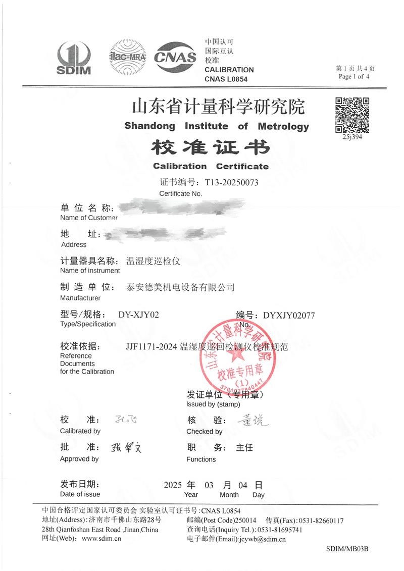 溫濕度巡檢儀校準(zhǔn)證書 2025-3-8 本文被閱讀 4068 次