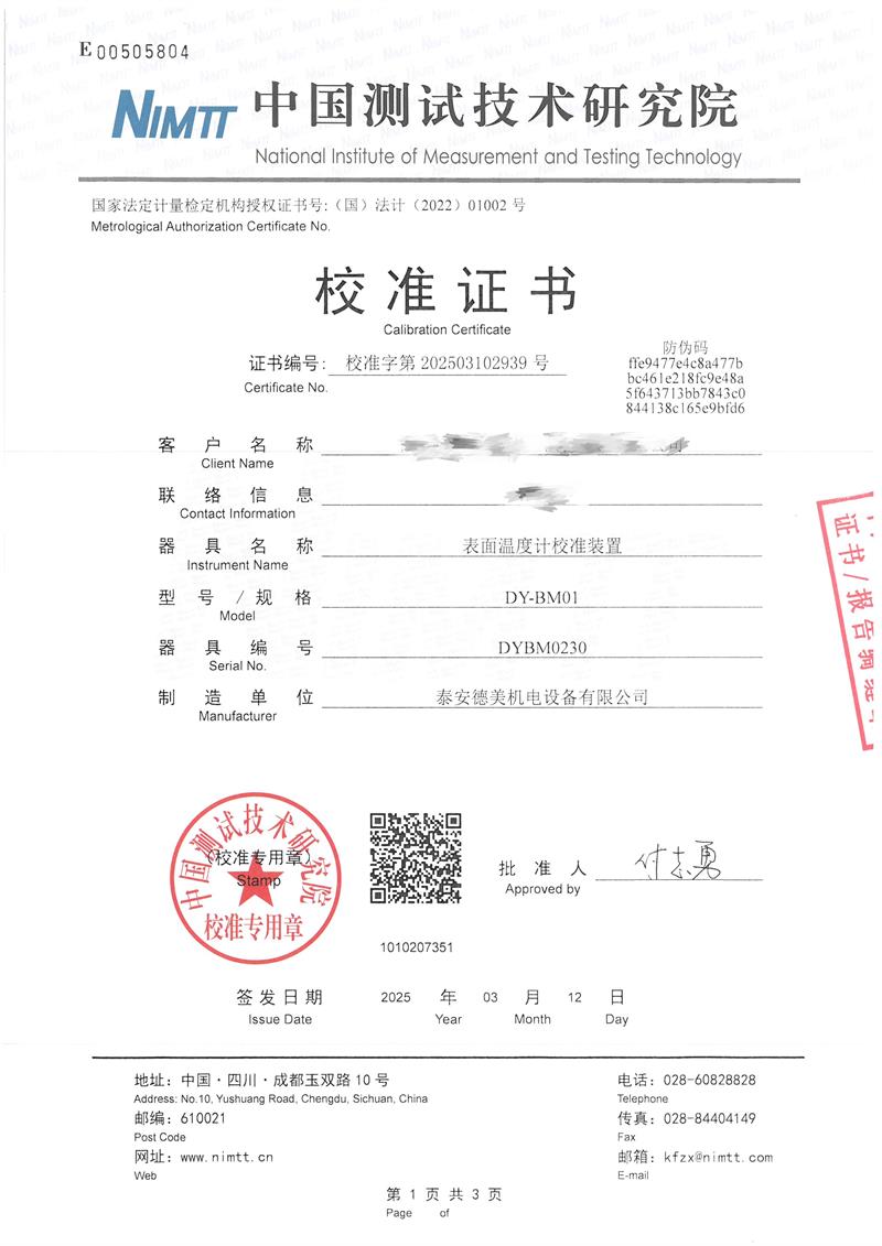 表面溫度計校準裝置(室溫+5~400℃)校準證書 2025-3-14 本文被閱讀 4280 次
