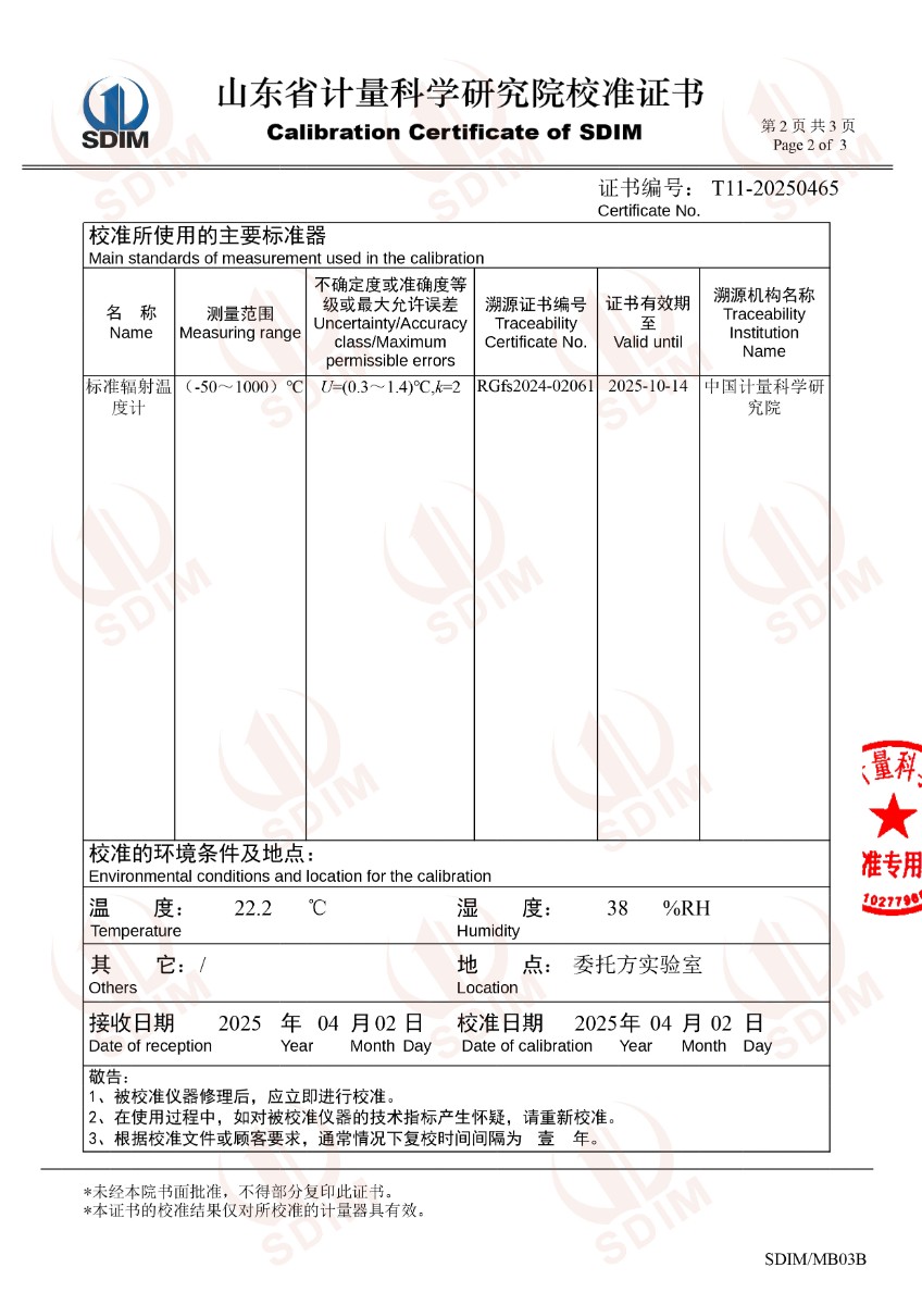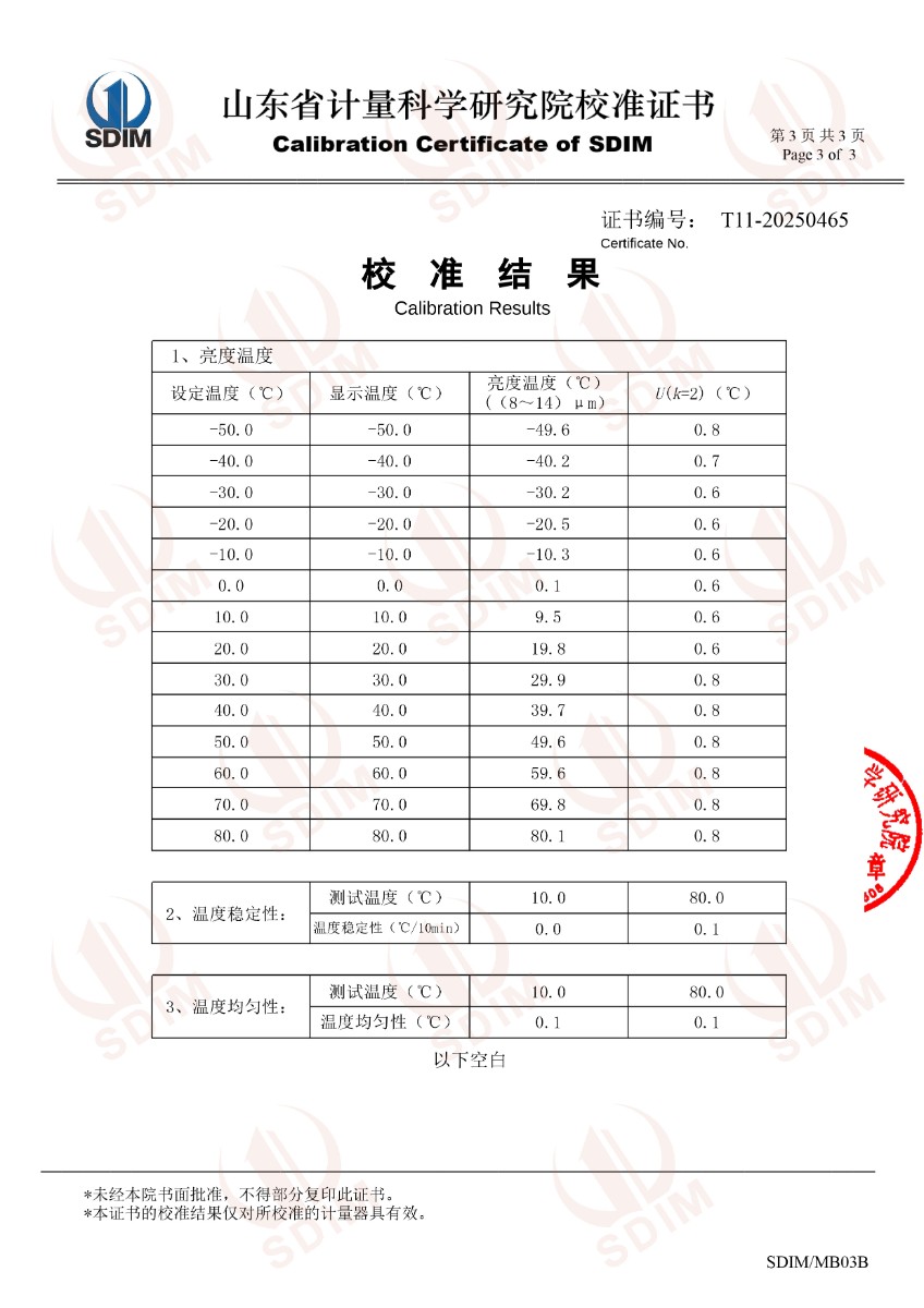 低溫浴式面源黑體爐(-50-80℃)校準(zhǔn)證書 2025-4-9 本文被閱讀 4355 次