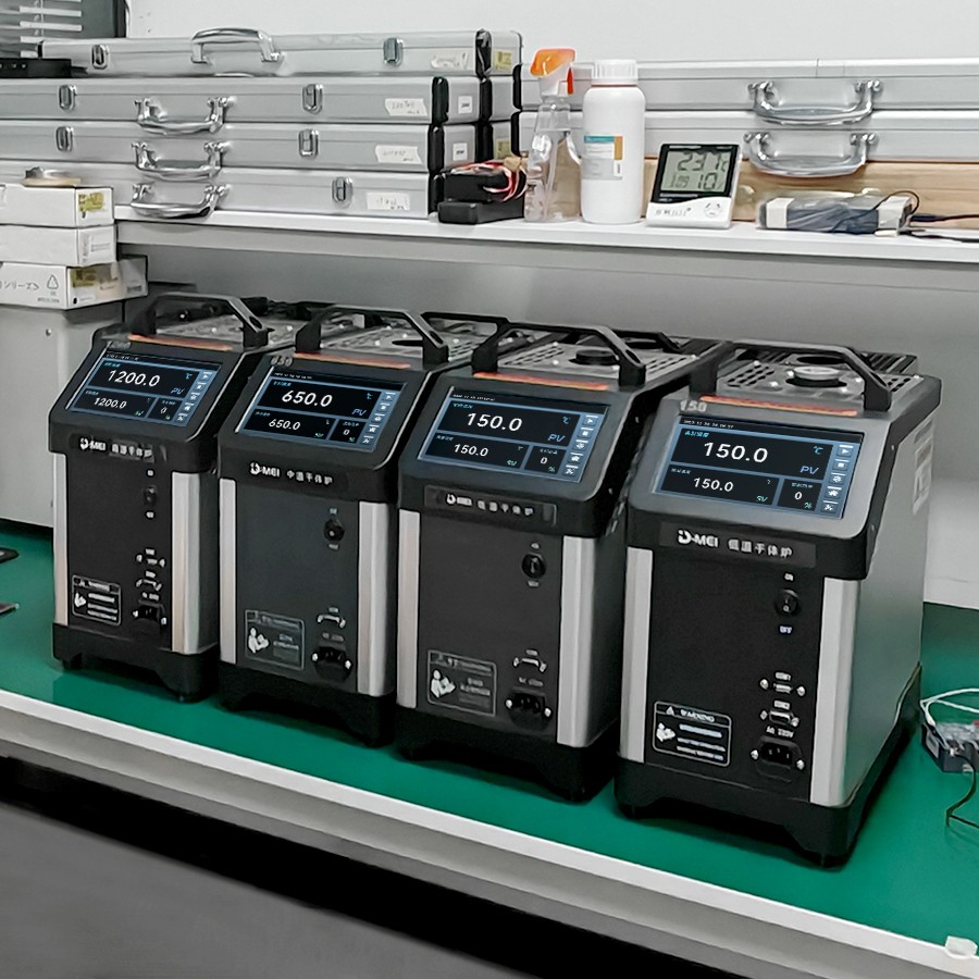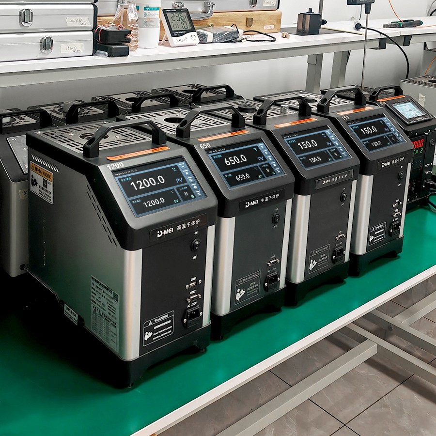 干體爐能夠提供一個穩(wěn) 定的、均勻的、準確的溫度環(huán)境(溫場),提供了類似于恒溫槽(液浴槽)的性能,但是干體爐卻攜帶方便,不需要放置液體。干體爐到達預(yù)定溫度點并且溫度穩(wěn) 定的時間比恒溫槽快5到10倍,這樣可以大大節(jié)省校準人員的時間,提高溫度檢定速度。干體爐的便攜性使其能夠到現(xiàn)場進行校準工作,從而解決了恒溫槽在運輸移動上的困難。 通過干體爐可以方便地校準溫度傳感器、水銀溫度計、膨脹式溫度計、熱電偶、熱電阻、等溫度傳感器。
