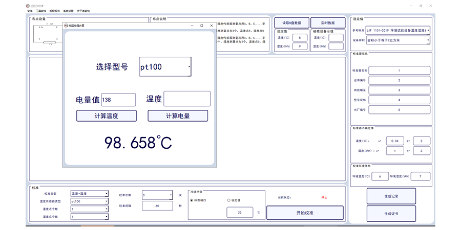 上位機(jī)軟件可進(jìn)行規(guī)范選擇,可進(jìn)行校準(zhǔn)類型、傳感器類型,校準(zhǔn)次數(shù),校準(zhǔn)間隔設(shè)置,生成excel的單條記錄/word的證書記錄。