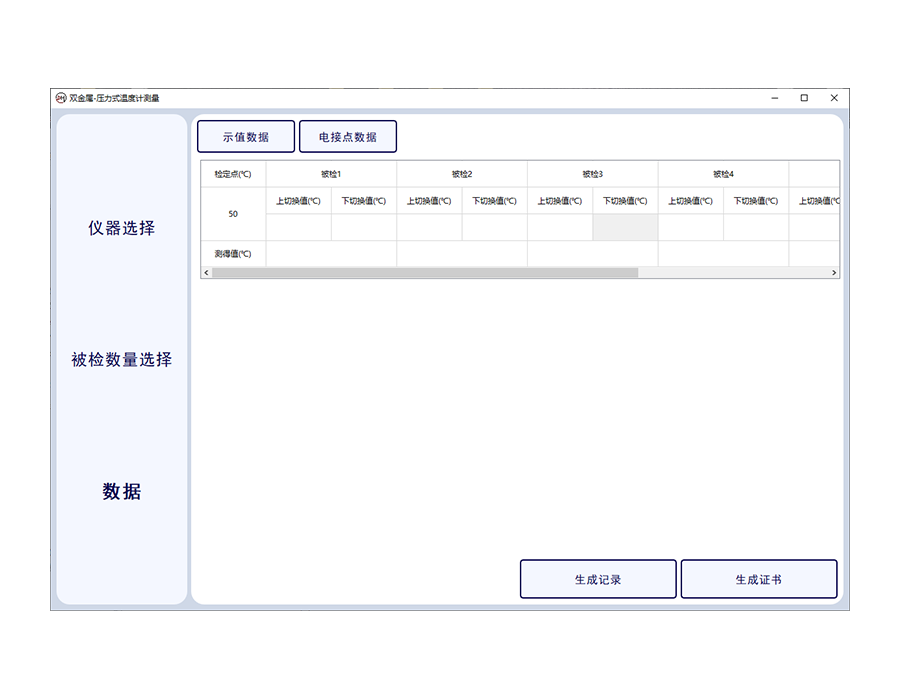 雙金屬溫度計(jì)軟件為DY-01熱工系統(tǒng)的配套軟件,可通過(guò)讀取雙金屬溫度計(jì)計(jì)壓力式溫度計(jì)數(shù)據(jù),記錄數(shù)據(jù)文件,并對(duì)數(shù)據(jù)文件進(jìn)行分析提取及計(jì)算,并可按照相關(guān)規(guī)程、規(guī)范輸出溫濕度場(chǎng)巡檢記錄及測(cè)試報(bào)告、證書等。